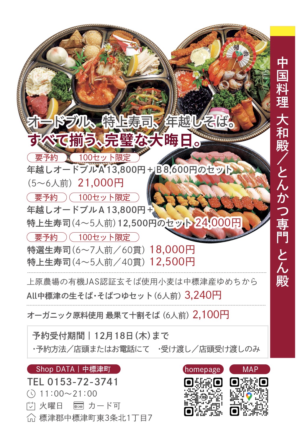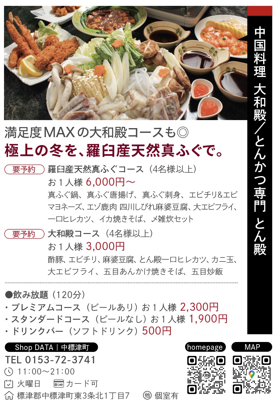 中国料理大和殿は1971年創業、とんかつ専門店とん殿は2012年創業。それぞれが長年培ってきた技術と情熱で、皆さまに至福のひとときをお届けします。